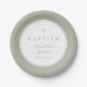 Prato De Papel Modern Sage Green Religious Cross Baptism