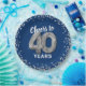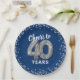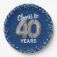 Chapas de papel elegantes da décima festa de aniversário com fundo azul de tendência que pode ser mudado para qualquer cor, brilho cintilante prateado, e o ditado "torce para 40 anos" usando quarenta balões de hellio prateado.