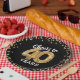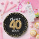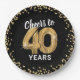 Chapas de papel elegantes de 140 festa de aniversário com fundo na moda preto que pode ser mudado para qualquer cor, brilho dourado brilhante e o ditado "cai aos 40 anos" usando 40 balões de hélio dourado.