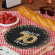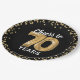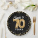As setuagésias placas de papel da Elegante, com fundo preto na moda, que pode ser mudado para qualquer cor, brilho dourado brilhante, e o ditado "ganha 70 anos" usando setenta balões de hélio dourado.