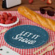 Placas de papel azul modernas e personalizáveis com flocos de neve brancos para suas festas de Natal. A legenda branca diz "Deixe-a nevar"