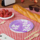 Prato De Papel Moedas de água roxas modernas e folhas de mapeamen