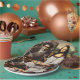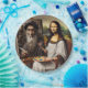 Uma reviravolta única e brincalhona na famosa pintura, mostrando Mona Lisa segurando uma paleta e uma escova, pintando ativamente o retrato da Vinci em um calcanhar.
