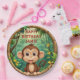 Adicione uma diversão alegre à mesa com este quadro de desenho animado macaco PAPER PLATE, perfeito para um aniversário infantil ou uma festa de matas! Apresentando uma ilustração lúdica de macacos e espaço para seu texto personalizado, é um toque divertido e pessoal que os pequenos amarão em qualquer celebração.