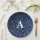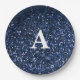 Prato De Papel Monograma Azul Inicial Brilho Branco Nome Personal