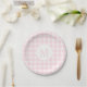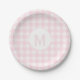 Prato De Papel Monograma Básico de Gingham Rosa Pálido Simples