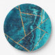 Prato De Papel Monograma Chic do Geode do Agate Dourado Azul do M