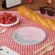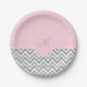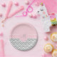 Prato De Papel Monograma - Cinza com Bolinhas rosa com Pastel