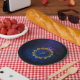Prato De Papel Monograma circular do teste padrão na galáxia azul