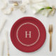 Prato De Papel Monograma Clássico Simples e Elegante em Vermelho