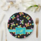 Desfrute de na moda entretenimento com estas lindas placas de papel com seu monograma inicial e borboletas brancas em um fundo preto. O monograma está em um emblema azul-turquesa e tira e pode ser mudado para um nome ou outra palavra. As lindas cores da lavanda, cor-de-rosa, azul-turquesa, laranja e amarelo criam uma paleta de cores de excelente que pop num fundo preto. Os elementos design do ícone da motif incluem também as flores amarelas, turquesas, lavandas e cor-de-rosa fuchsia e círculos reluzentes. Personalize para você mesmo ou para um presente. As borboletas são sempre populares e modernas, contemporâneas e na moda com apelo excelente. Totalmente personalizável. Coordenar com outros produtos de cores iguais ou diferentes nesta loja.