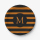 Prato De Papel Monograma das faixas laranja e preta modernas