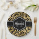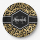 Prato De Papel Monograma das Manchas Leopardo Pretas Douradas