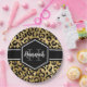 Chic gold e placa de papel de impressão de leopardo preto com um nome personalizado e modelo de monograma. Um padrão de impressão animal de safari giro e tendencioso veio com seu próprio pedaço de personalização.