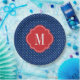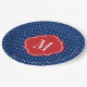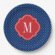 Prato De Papel Monograma de Bolinhas Vermelhas e Azuis
