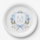 Placas De Papel Do Monograma Do Caranguejo Do Grande Milênio Costeiro. Lindas cores azuis, brancas e natas clássicas. Entre no MODO EDIT para alternar o monograma de caligrafia personalizado. Descubra o que você precisa. Personalize esta design, basta selecionar o botão "Personalizar!" acima!