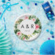 Prato De Papel Monograma de Casamento de Folhas Tropicais do Hava