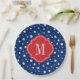 Prato De Papel Monograma de Estrelas Patrióticas Vermelhas Branca