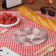 Prato De Papel Monograma de Folha Metálica Dourada Rosa Pink para