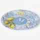 Prato De Papel Monograma de fruta de limão, azulejo azul