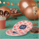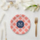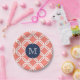 Prato De Papel Monograma de Hiperligação de Coral e Marinho