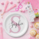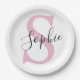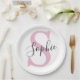 Prato De Papel Monograma de Nome Personalizado Moderno - Rosa