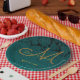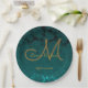 Chapas de papel de tema de casamento outono elegante de ouro verde-escuro. Janto de recepção personalizada de padrão floral monograma. Clássico, único, chico, moderno, moderno, lendário, na moda, metálico suculento. Linda tipografia. Imagem copyright Marg Seregelyi Fotografia.