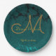 Prato De Papel Monograma do Casamento outono Dourado Floral de Te
