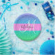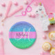 A cinzenta e o glam azul, verde, aqua e a tartaruga mermaid glitter brilham o nome do monograma do gradiente e a placa inicial de papel. Seu nome personalizado e monograma são escritos em um elegante roteiro escrito à mão com um fundo rosa.