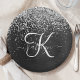 Prato De Papel Monograma do Sparkle Preto com Glitter de Prata Pe