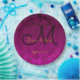Decoração de recepção jante de casamento. Chapas de papel personalizadas de monograma floral preto cor-de-rosa quente da Fuchsia. Chic, elegante, moderno, moderno, clássico, na moda, lindo padrão metálico suculento. Para alterar o script, clique em editar design. Imagem copyright Marg Seregelyi Fotografia.