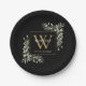 Prato De Papel Monograma Dourado Negro Verde Moderno Elegante
