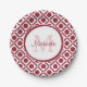 Prato De Papel Monograma e Nome Geométrico Modernos, Vermelho e B