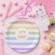 Prato De Papel Monograma em Círculo Branco Banhas Arco-íris Paste