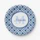 Prato De Papel Monograma Geométrico Azul e Branco Moderno com Nom