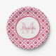 Prato De Papel Monograma Geométrico Moderno, Rosa e Branco, Com N