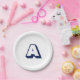 Prato De Papel Monograma inicial personalizado azul marinho moder