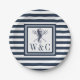 Prato De Papel Monograma Marinho Náutico Stripe Azul