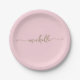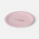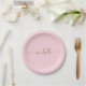 Pratos de papel cor rosa bege personalizados com monograma elegante minimalista moderno feminino em dourado com nome personalizado. Apresentando o primeiro nome em uma linda caligrafia com rabiscos (ou tipografia) em dourado sobre um fundo cor rosa bege ou rosa bebê. São fáceis de personalizar. Ótimos para aquecimento de casa, também para aniversário, casamento, festa de 16 anos, chá de noiva, despedida de solteira, festa de formatura, chá de bebê e é para a garota que ama coisas minimalistas únicas.
