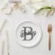 Prato De Papel Monograma Moderno Nome do Elegante Script de Cinza