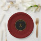 Script inicial "N" do monograma em círculo preto com fundo vermelho escuro