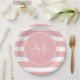 Prato De Papel Monograma Nome Listras Rosa e Branco