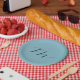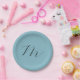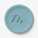 Prato De Papel Monograma, Pastel Azul Sólido, profissional minima