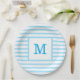 Prato De Papel Monograma Personalizado de Bandas Azuis e Brancas