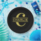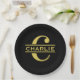 Prato De Papel Monograma Personalizado E Nome Preto E Dourado