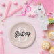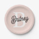 Prato De Papel Monograma Personalizado Moderno e Nome Pastel Rosa