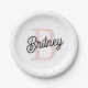Prato De Papel Monograma Personalizado Moderno e Nome Pastel Rosa