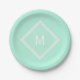 Prato De Papel Monograma Personalizado Verde de Mint Pale Moderno