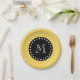 Prato De Papel Monograma preto amarelo do teste padrão | de
