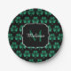Prato De Papel Monograma preto de Shamrock Verde Sparkle Emerald